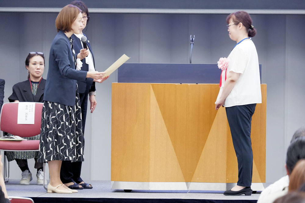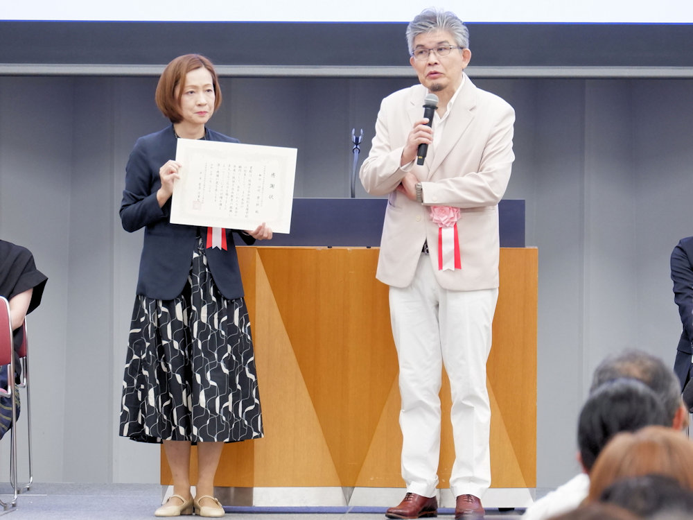 石川大会実行委員長を務められた谷畑 由佳様(石川県立いしかわ特別支援学校令和6年度PTA副会長)、そして全肢P連顧問で肢体不自由教育の充実と推進にご尽力いただいた田村 康二朗様に、感謝状を贈呈し、お二人からご挨拶を賜りました。