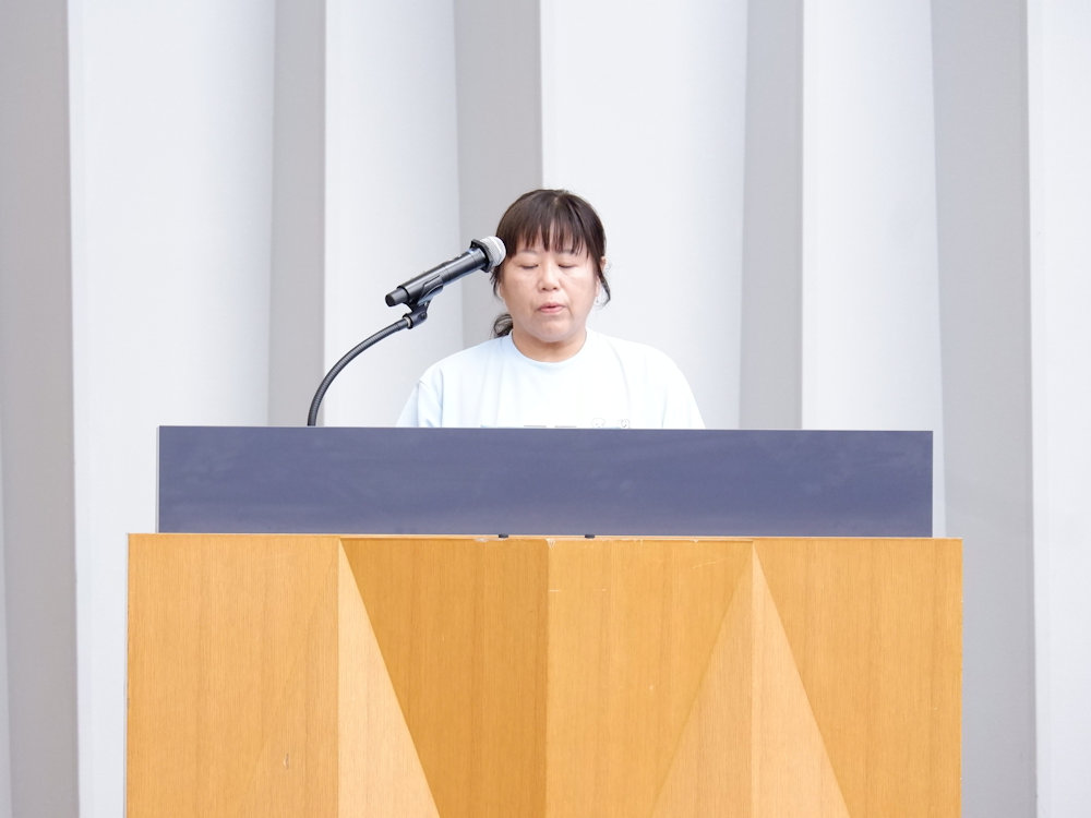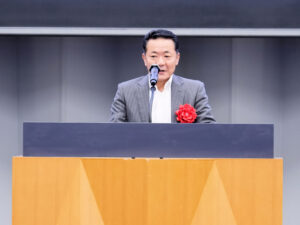 続いて、大阪大会開催の準備に尽力された、全肢P連「大阪大会」実行委員長(大阪府立東住吉支援学校PTA会長)の 小山様より歓迎のあいさつがあり、その後、感謝状の贈呈、閉式のことばで開会式は締めくくられました。